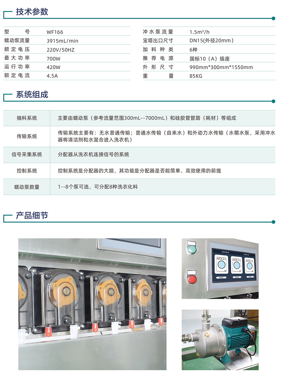 5) 蠕动泵数量:1--8个泵可选,可分配8����� �������Ƴ������������ �������Ƴ����������� �������Ƴ������������ �������Ƴ�������种洗衣化料。